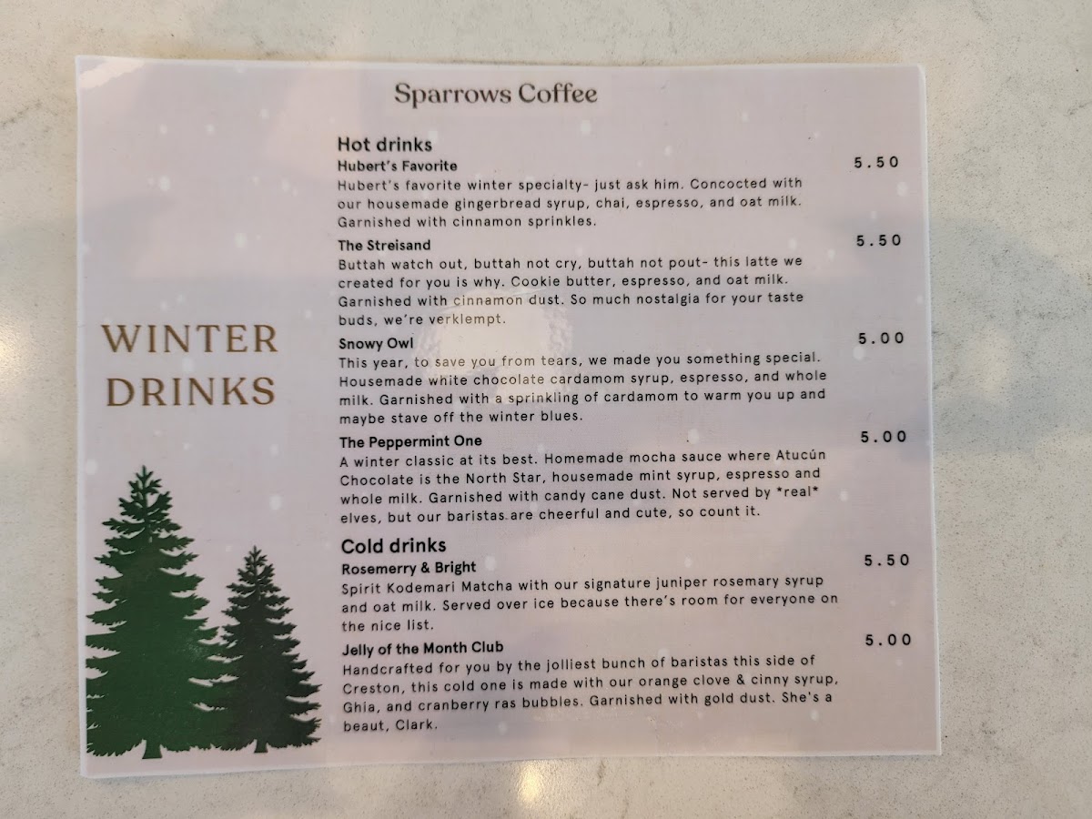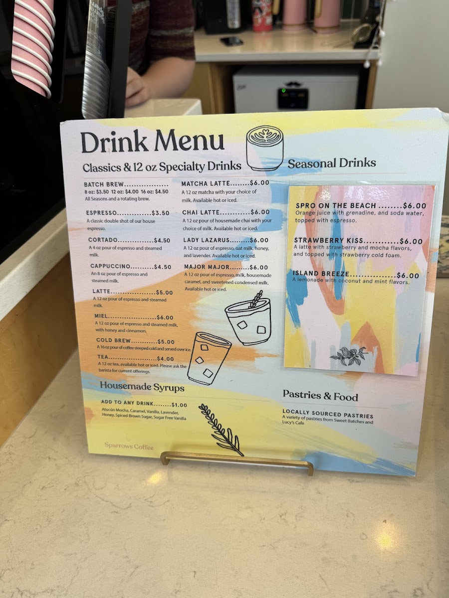 Sparrows Coffee Menu